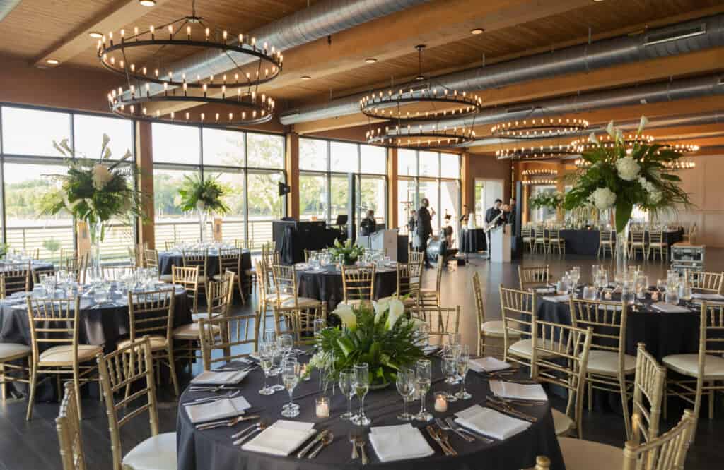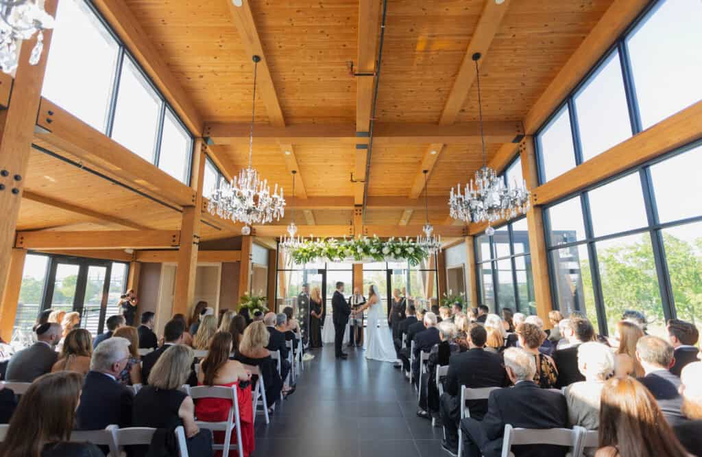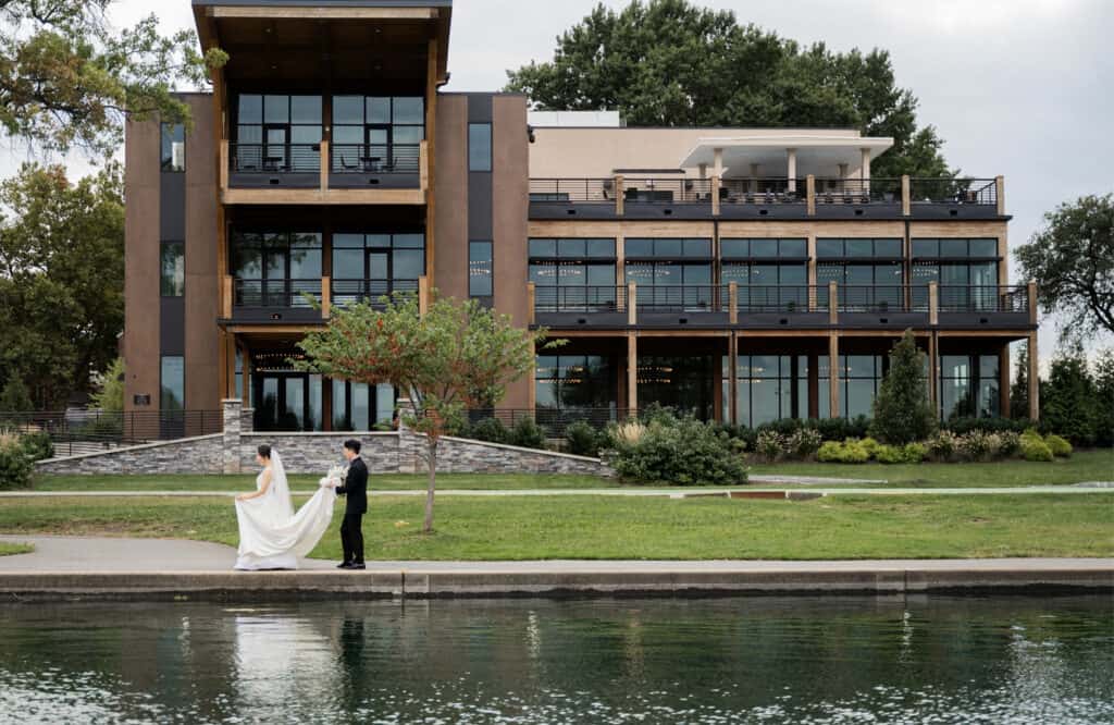 Blending history with modern design, The View highlights the original 1929 Lincoln Lodge’s stone façade, timber beams, and antique fixtures. Set in the heart of Lincoln Park, it features a beautiful event space overlooking a serene pond and fountain.